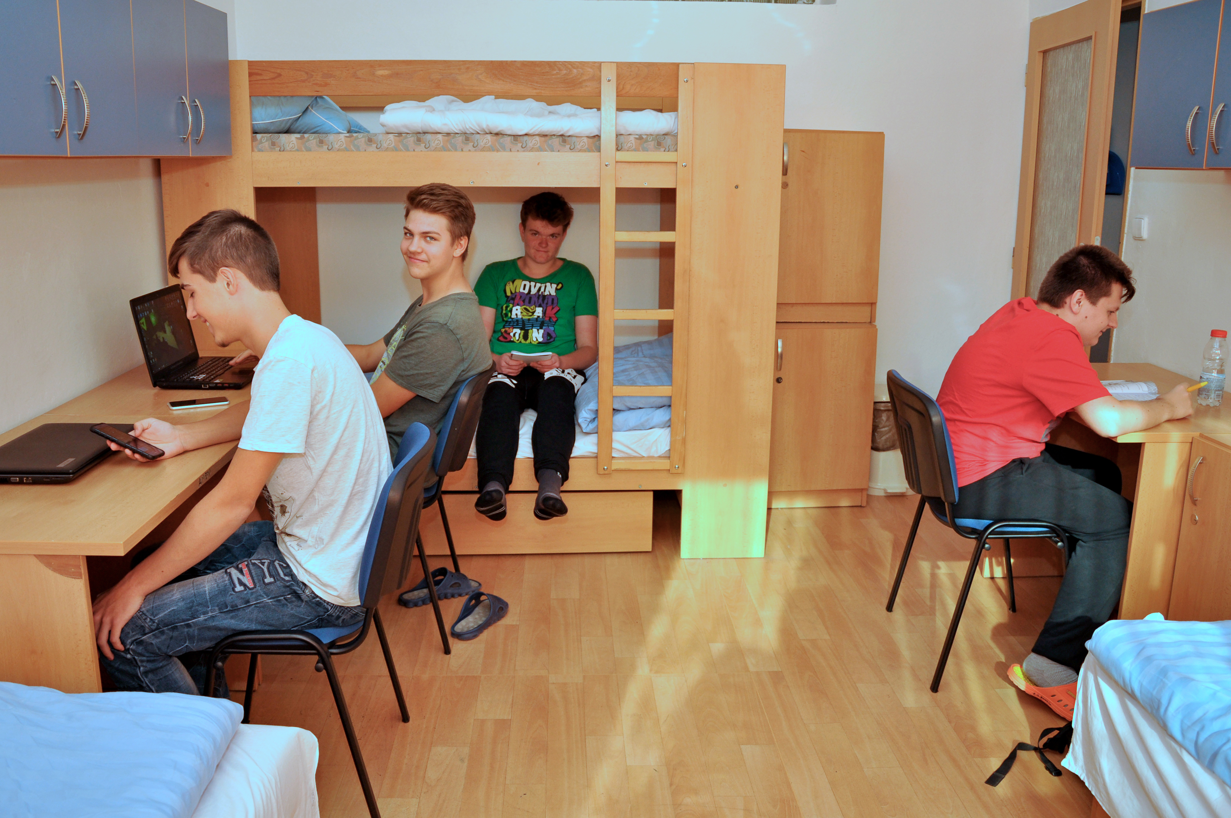Měsíční úplata za ubytování žáka na DM je za dvoulůžkový a třílůžkový pokoj 1 900 Kč, a za čtyřlůžkový pokoj 1200 Kč a celodenní stravování ve školní jídelně 2 600 Kč.